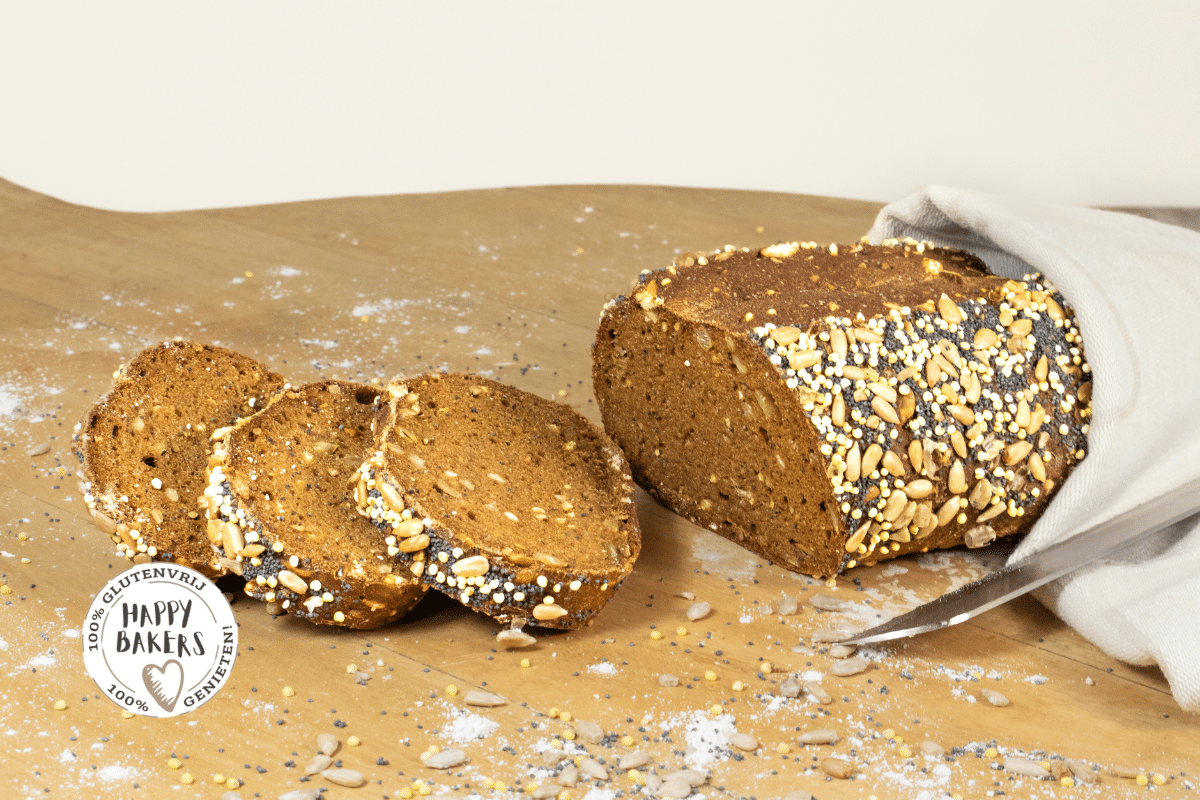 Het Glutenvrij Donker Meerzaden Desembrood (4oog) is gemaakt van boekweit, vezelrijk, vegan en een bron van eiwitten – de perfecte keuze voor een bewuste levensstijl!Altijd vers afgebakken glutenvrij dessem brood